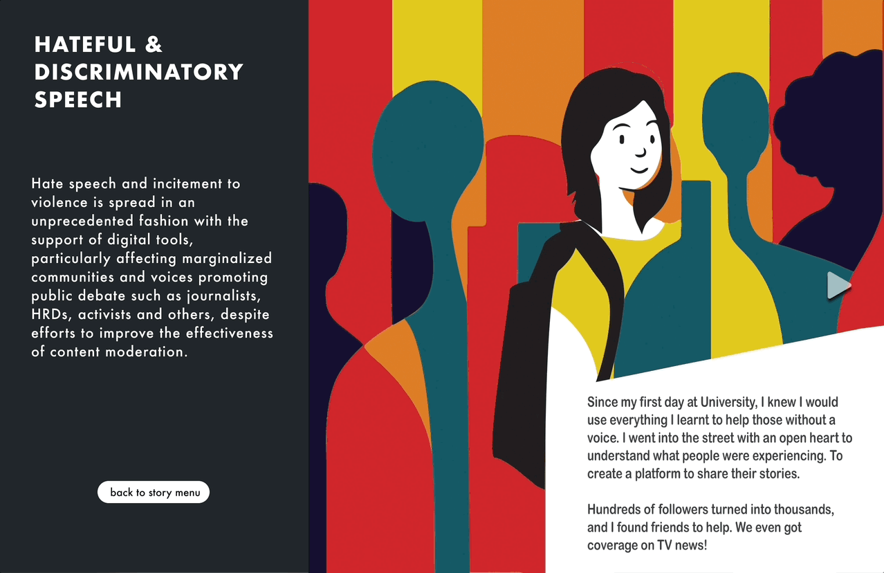 My role focused on designing the foundation for a narrative-first experience: creating the first iteration of the platform, which was presented to the UN OHCHR and passed to the next design team for further development.